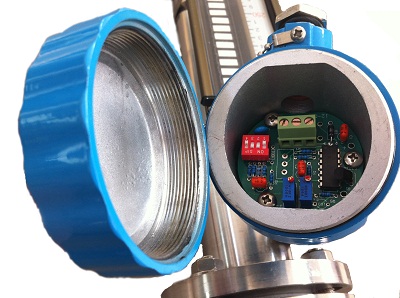 在管體的另一側可按用戶需要加裝電遠傳變送器,將液位高度轉換成標準電流信號輸出,以供液位信號輸出,以供液位信號遠傳至二次儀表進行指示控制與檢測。