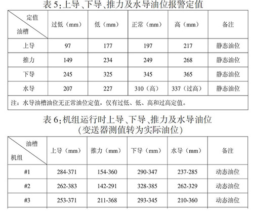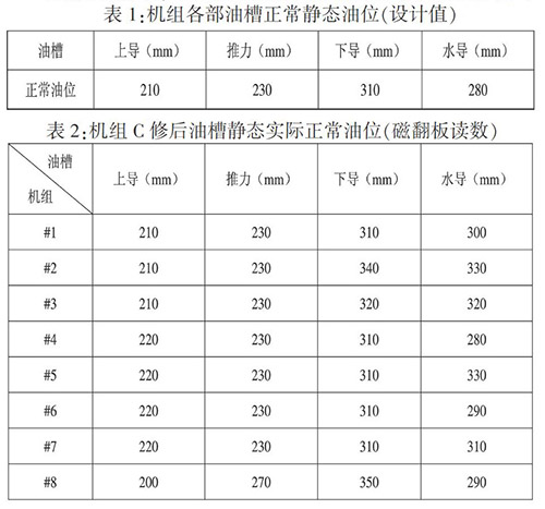 機械油位無定值,機組C修時油槽實際加油油位與設計靜態油位存在偏差,實際靜態正常油位詳見表2。