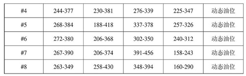 通過表7,按照*大波幅=動態*大值-靜態*小值、*小波幅=動態*小值-靜態*大值可以得出油位*大波幅和*小波幅,詳見表8:
