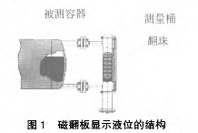 磁翻板是顯示液位的部分(見圖 1)。磁翻板內(nèi)的翻珠內(nèi)裝有柱狀的磁鋼,而所有的翻珠均勻布置于鋁制的卡槽內(nèi),當(dāng)液位計中液位上升時,由于磁鋼受浮子內(nèi)磁場的影響帶動翻珠由白色翻轉(zhuǎn)為紅色;反之液位下降時,翻珠由紅色翻轉(zhuǎn)為白色。這樣磁翻板在無需任何電源的情況下就可以反應(yīng)出容器內(nèi)液位的變化。
