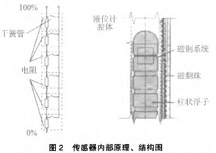 傳感器的作用是采樣液位高低位置并轉(zhuǎn)換成標(biāo)準(zhǔn)信號傳送至控制室,傳感器實(shí)際由干簧管和電阻組成。當(dāng)浮子內(nèi)磁鋼位置變化后,磁場通過器壁帶動傳感器內(nèi)干簧管觸點(diǎn)吸合。干簧管吸合的位置決定回路的阻抗大小,干簧管的通常位置為10mm1組。回路的大小正好與液位的高低成正比,這樣*后由置于傳感器外殼內(nèi)的變送器將電阻信號轉(zhuǎn)換成標(biāo)準(zhǔn)的電流信號,送至控制室。具體結(jié)構(gòu)、原理圖見圖2。