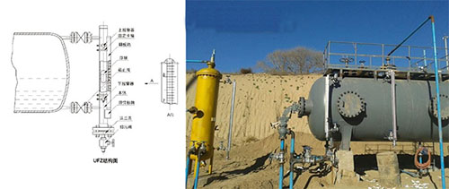 2、在罐內(nèi)不帶壓力的狀態(tài)下以手動方式往儲罐內(nèi)注水,當(dāng)水位略高于液位計(jì)進(jìn)水管時停止注水,尿素溶液液位計(jì)打開下連接法 蘭口手動球閥E并松開罐體與被校液位計(jì)間的連接法蘭F(不取下,使水流不過沖),直到管 路中 無涌動流時,關(guān)閉E,取下法蘭,待罐內(nèi)液體平穩(wěn)時打開E,再待呈滴流狀態(tài),穩(wěn)定1min(必要 時可通過排水閥門排水,提高檢測效率);