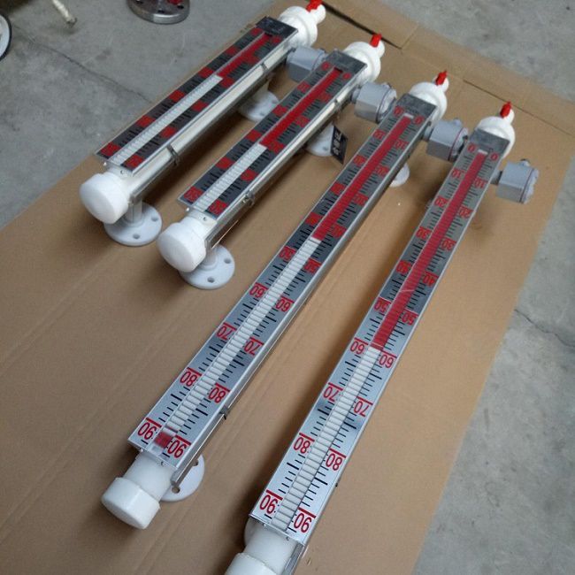 根據浮力原理,浮子在測量管內隨液位的升降而上、下移動,浮子內的永久磁鋼通過耦合作用,驅動紅、白色翻柱翻轉180°,液位上升時翻柱由白色轉為紅色,下降時由紅色轉為白色,從而實現液位指示。