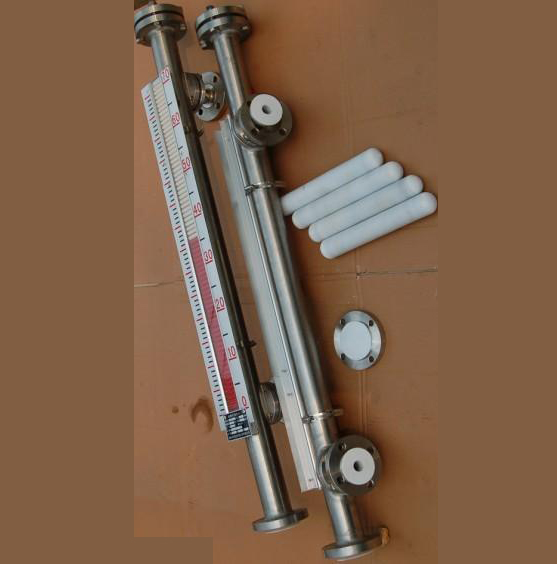 ⑴(普通型),它是由本體、浮子、面板框等部件組成。液位計與容器上下法蘭連接,連接時中間加閥門,安裝在一側。它適用于在不需要保溫或冷卻,且介質對奧氏體不銹鋼不腐蝕的場合。