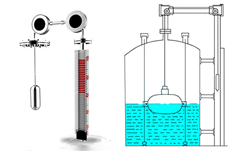 帶報(bào)警開關(guān)磁翻板液位計(jì)是一種機(jī)械式的液位測(cè)量機(jī)構(gòu),根據(jù)力平衡原理設(shè)計(jì),具體為阿基米德的浮力原理和牛頓的重力原理,在測(cè)量容器中的液位處于某一位置時(shí)浮標(biāo)重量W,重錘指針重量W1 和浮標(biāo)浸在液體中所受浮力F,整個(gè)系統(tǒng)中摩擦力f,四力處于平衡狀態(tài)(即W-F- W1-f=0)。當(dāng)液位上升時(shí),由于牽引索吊著浮子沿導(dǎo)向索被浮起,液體浮力,F(xiàn)增大,使原平衡系統(tǒng)地四力失去平衡,在重力的作用下,重錘指針向下滑行,同時(shí)也連續(xù)地在標(biāo)尺上指示液位的上升高度。同理,可說明液位下降時(shí),浮子浮力F減少,使?fàn)恳髋c液體同步下降,由于浮子的重量大于重錘指針的重量,使指針向上運(yùn)動(dòng),同樣在液位連續(xù)下降變化時(shí),重錘指針能隨之連續(xù)地指示液位的下降情況,從而達(dá)到準(zhǔn)確測(cè)量液位變化的目的。