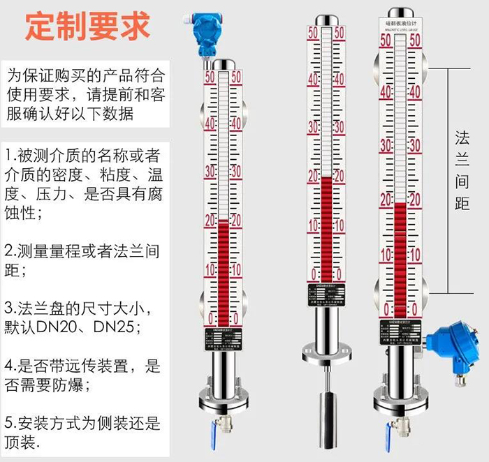 使用磁性液位計測量液位高度時,量程是關(guān)鍵的因素之一,如果無法確認(rèn)具體的量程,在施工時,可能就需要對安裝位置進行調(diào)整才能滿足工況,如果量程誤差比較大,那么直接會影響測量效果。