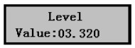 1)儀表上電,儀表進(jìn)入測量,液晶顯示液位數(shù)值,如右圖,而實(shí)測液位為3.320m,下面介紹標(biāo)定方法。