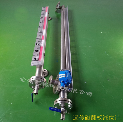 磁翻板液位計主體外的翻板箱受主體內(nèi)浮子(具有定向磁性源,按不同介質(zhì)和壓力針對研制)的作用促其翻板翻動并顯示紅白顏色,并隨浮子的移動指示不同的液面高度。在指示器左側(cè)配有醒目的刻度標尺,從而使液位的指示顯得更加清晰。
