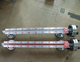 液位計根據浮力原理,浮子在測量管內隨液位的升降而上下移動,浮子內的永久磁鋼通過磁耦合作用,驅動紅、白色翻柱翻轉180’液位上升時,翻柱由白色轉為紅色,下降時,翻柱由紅色轉為白色,從而實現液位的指示。